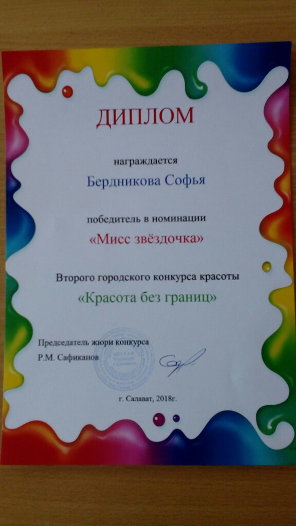 Поздравляем с победой Бердникову Софью в городском конкурсе "Красота без границ" в номинации "Мисс звездочка".